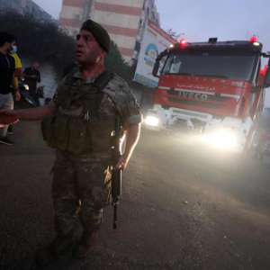 9月27日,士兵在黎巴嫩首都贝鲁特南郊以军空袭现场警戒。新华社发(比拉尔·贾维希摄)
