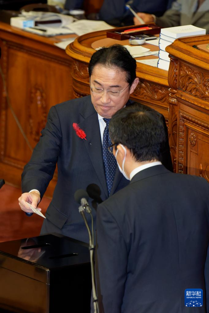 10月1日,在日本东京国会众议院,岸田文雄在新一任首相指名选举中投票。新华社记者 张笑宇 摄