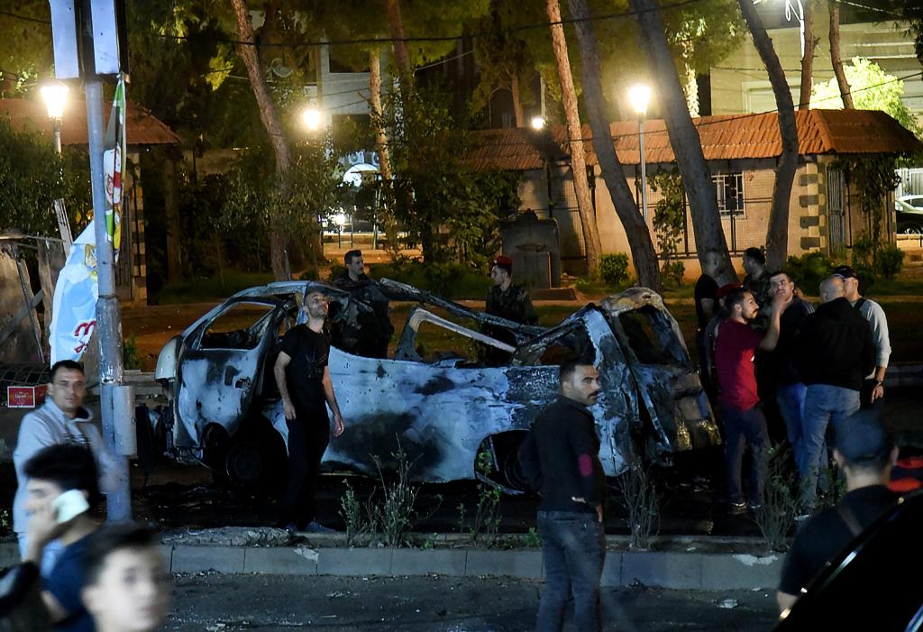 10月1日凌晨,在叙利亚首都大马士革,人们聚集在空袭现场附近。叙利亚军方1日发表声明说,叙首都大马士革当天凌晨遭以色列导弹袭击,袭击造成3名平民死亡、9人受伤。新华社发(阿马尔·萨法尔贾拉尼摄)