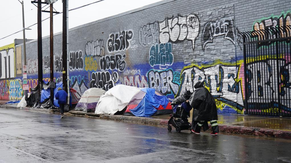 这是2023年1月10日在美国洛杉矶市中心拍摄的无家可归者的帐篷。新华社发(曾慧摄)
