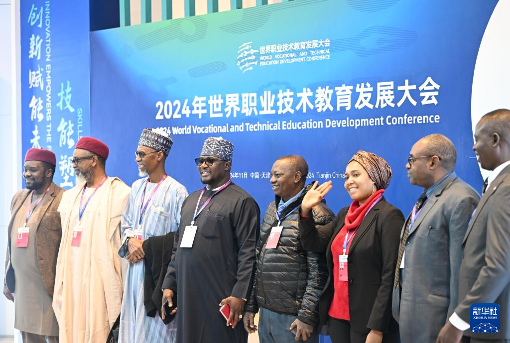 11月21日,参会嘉宾在2024年世界职教大会上合影留念。新华社记者 李然 摄