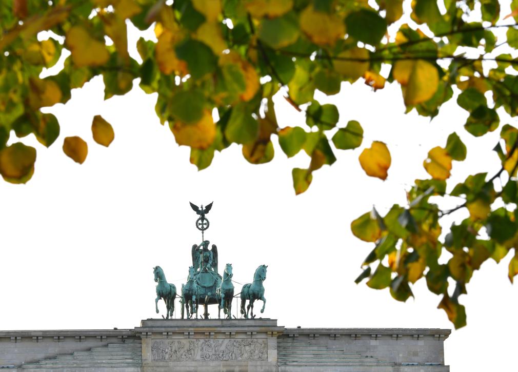 这是2022年10月27日在德国首都柏林拍摄的勃兰登堡门一角。新华社记者任鹏飞摄