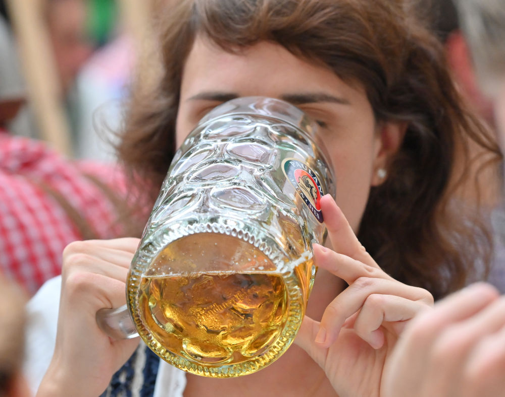 9月21日,一名女子在德国慕尼黑啤酒节上享用啤酒。新华社记者任鹏飞摄