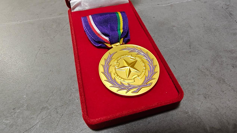 图为班吉大学孔子学院教师收到的学术棕榈勋章。(班吉大学孔子学院供图)