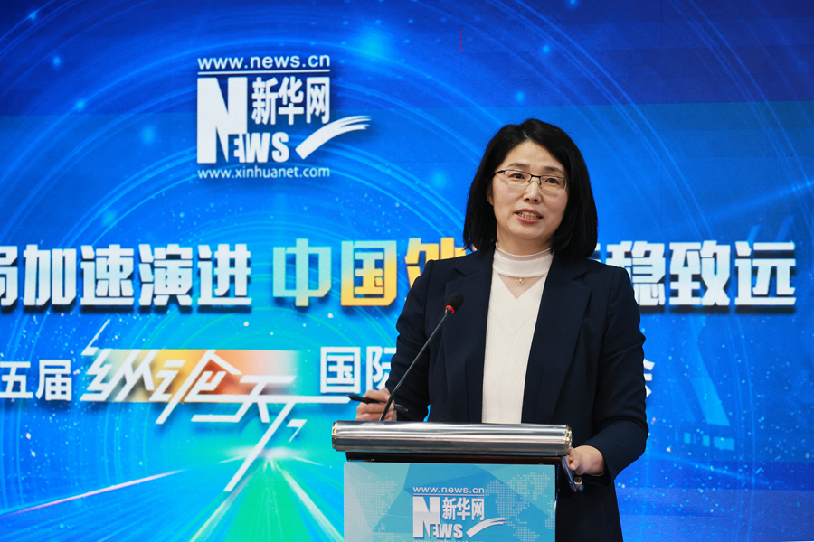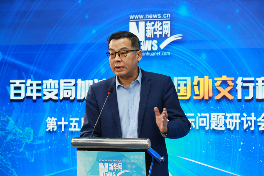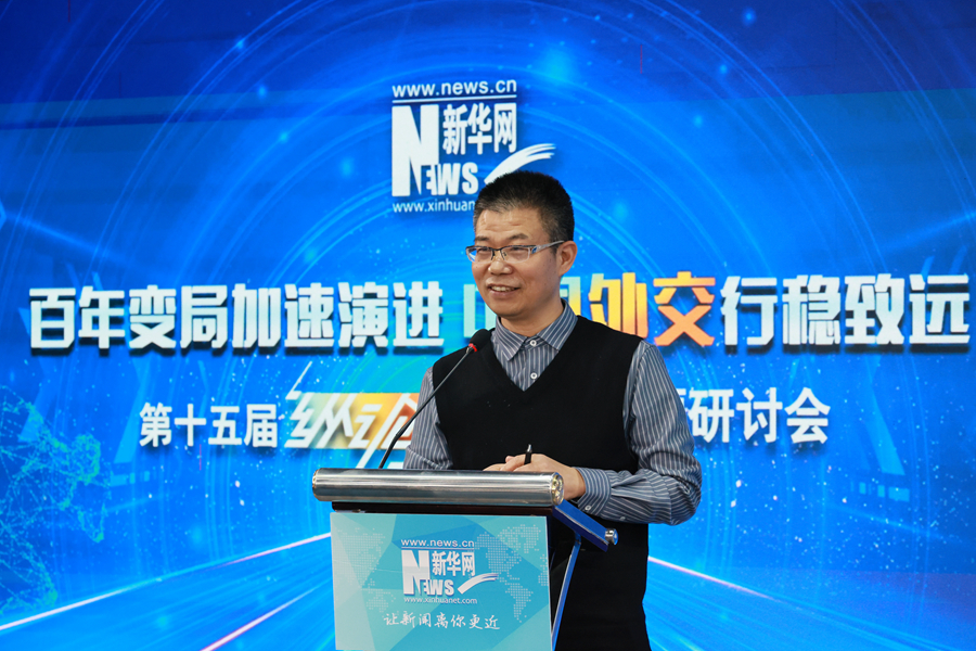 1月2日,新华网第十五届“纵论天下”国际问题研讨会在北京新华网总部举办。图为外交学院院长、中国国际关系学会副会长王帆在进行下半场主题演讲。新华网 杨霁昕 摄