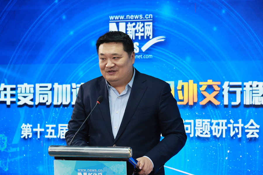 1月2日,新华网第十五届“纵论天下”国际问题研讨会在北京新华网总部举办。图为中国国际问题研究院副院长刘卿在进行下半场主题演讲。新华网 杨霁昕 摄