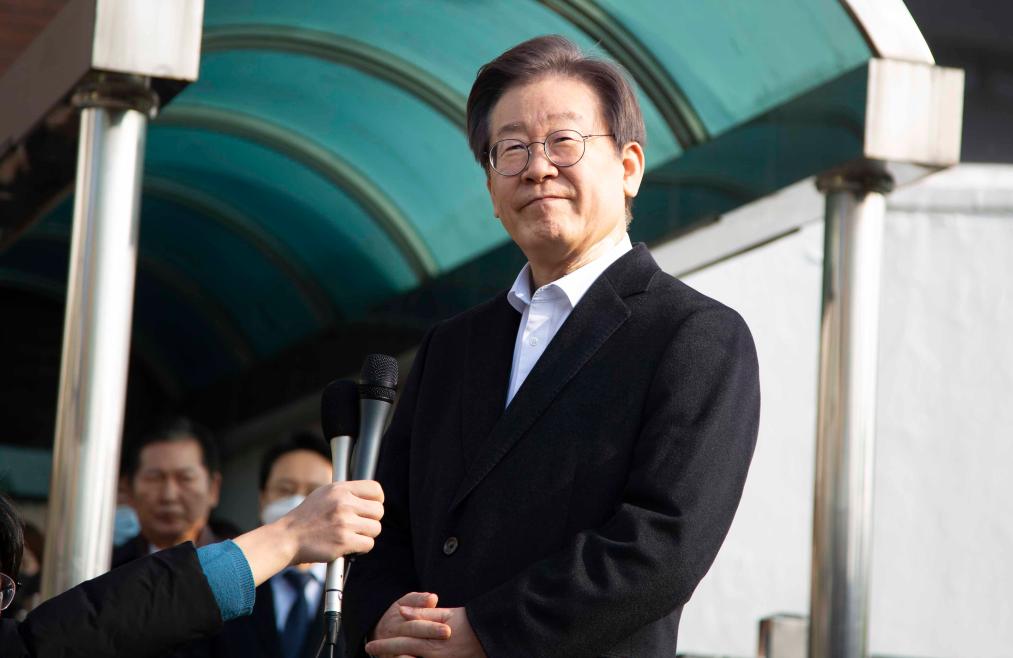2024年1月10日,韩国最大在野党党首李在明从首尔大学医院出院。新华社发(全休相摄)