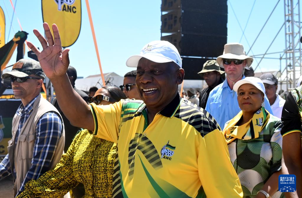 1月11日,在南非开普敦,南非非洲人国民大会(非国大)主席拉马福萨向支持者挥手致意。新华社发(恩齐卡·恩赞德 摄)