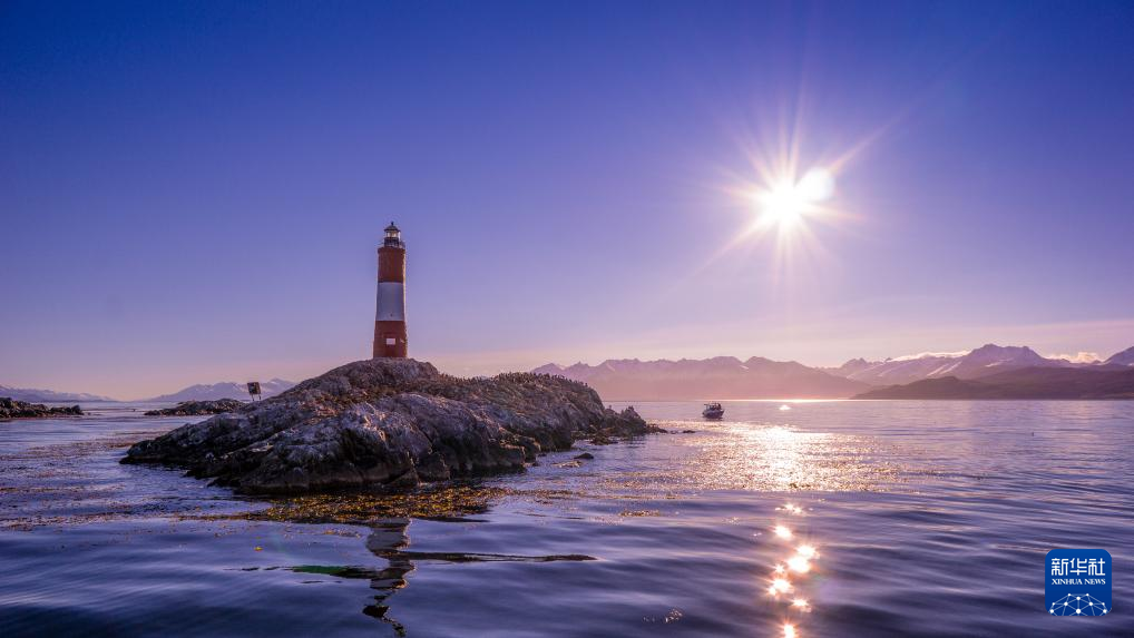 这是2015年4月7日在阿根廷乌斯怀亚附近拍摄的一座灯塔。这座小城依山面海,因南极旅游而兴。新华社记者王天聪摄