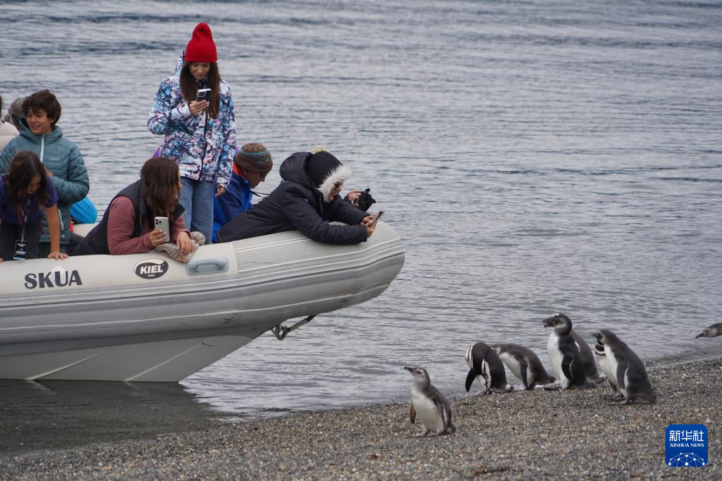 2024年12月15日,游客乘坐游船游览位于阿根廷火地岛的企鹅栖息地。新华社记者 王钟毅 摄