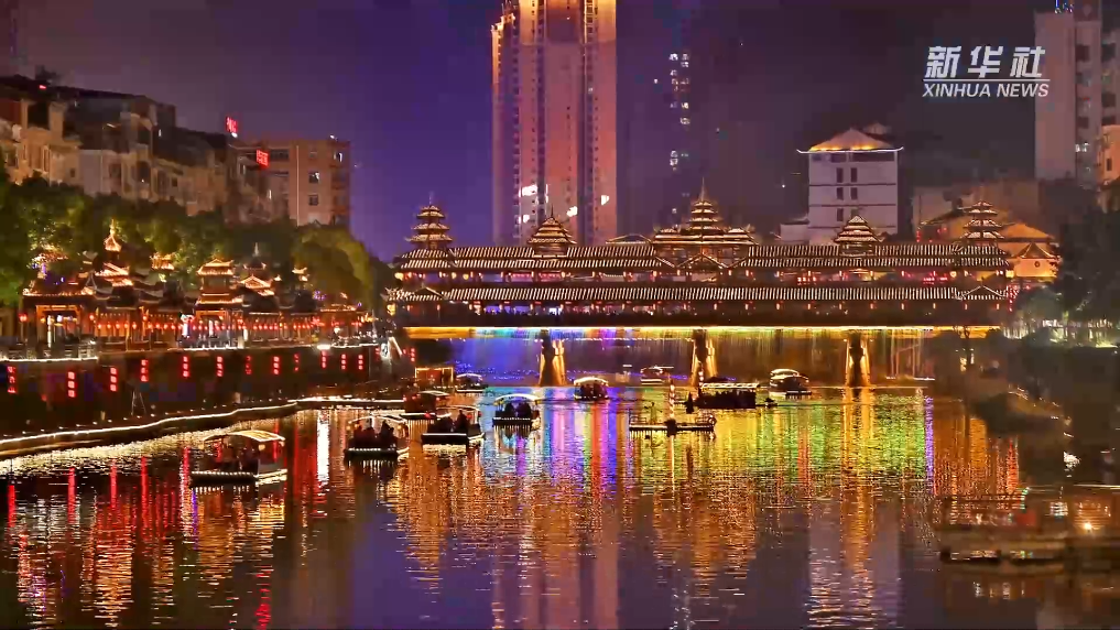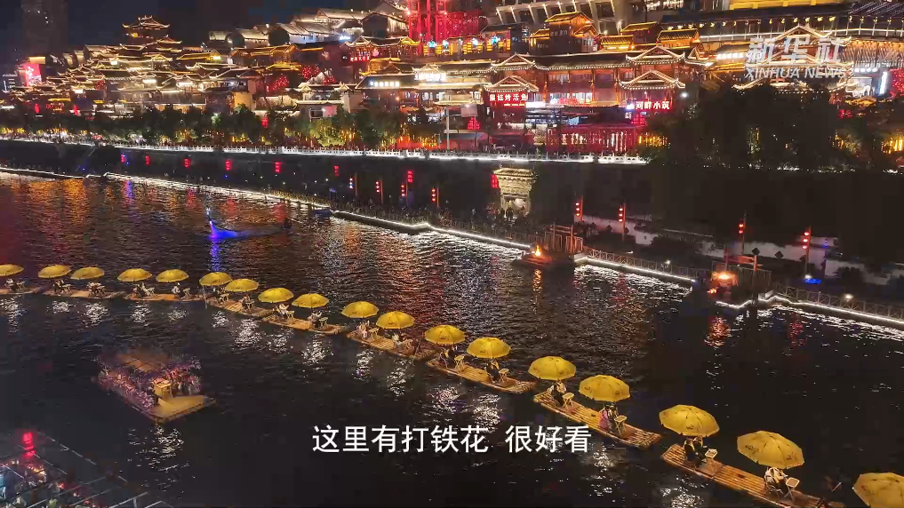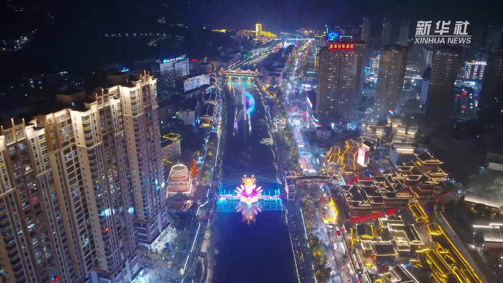 春节假期,位于武陵山深处的湖北省恩施土家族苗族自治州宣恩县贡水河畔张灯结彩,鲲鹏火舞、非遗大巡游等新春活动轮番上演,璀璨的灯火点亮了这座山水小城。来自英国的约翰·费伦一家选择在这里度过新年。约翰·费伦是一名纺织品技术专家,长期在中国定居,今年春节,他特意邀请远在英国的儿子和儿媳一起来中国团聚,感受深山小城的浓浓年味。