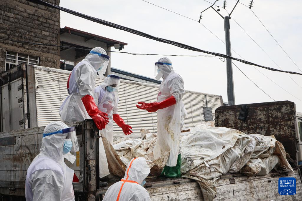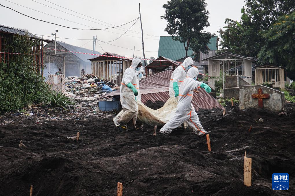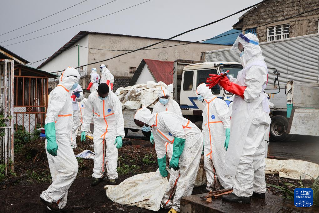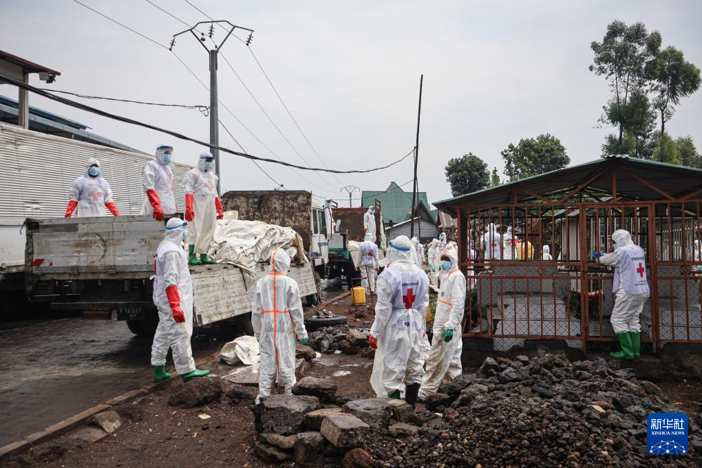 2月5日,在刚果(金)北基伍省首府戈马市,工作人员转移遇难者遗体。