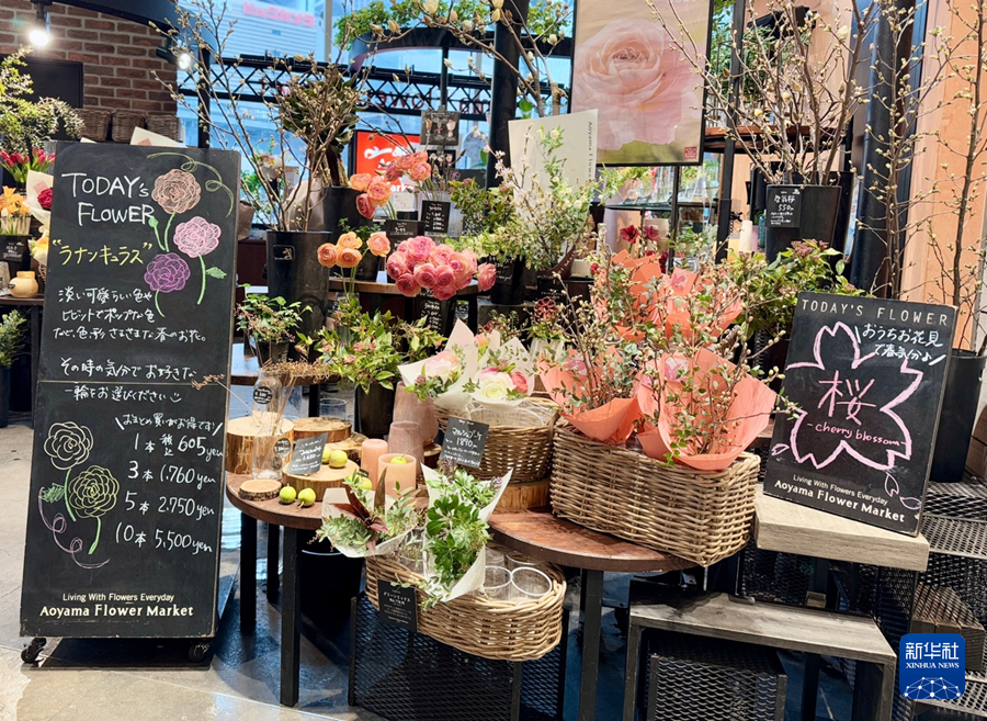 16日,在东京某商场拍摄的鲜花店。新华社记者彭纯摄