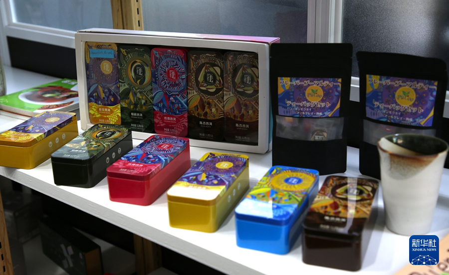 14日,日本云南总商会展示的普洱茶。新华社记者岳晨星摄