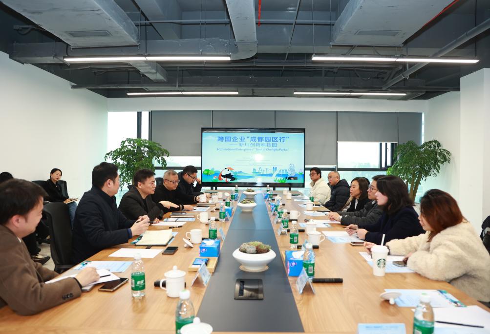 2月21日,部分跨国企业代表在成都新川创新科技园参加座谈交流。新华社发