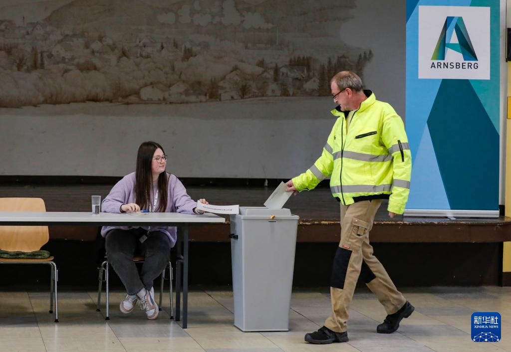 2月23日,在德国北莱茵-威斯特法伦州阿恩斯贝格,选民在一处投票站投票。新华社记者 张帆 摄