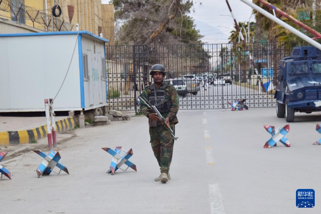 3月12日,在巴基斯坦西南部俾路支省首府奎达,一名安保人员守卫在火车站附近。新华社发