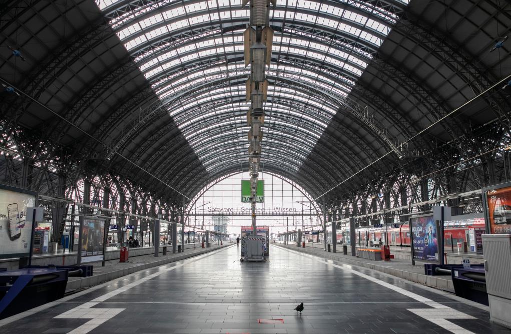 这是2024年1月10日在德国法兰克福主火车站拍摄的空荡的站台。新华社记者张帆摄