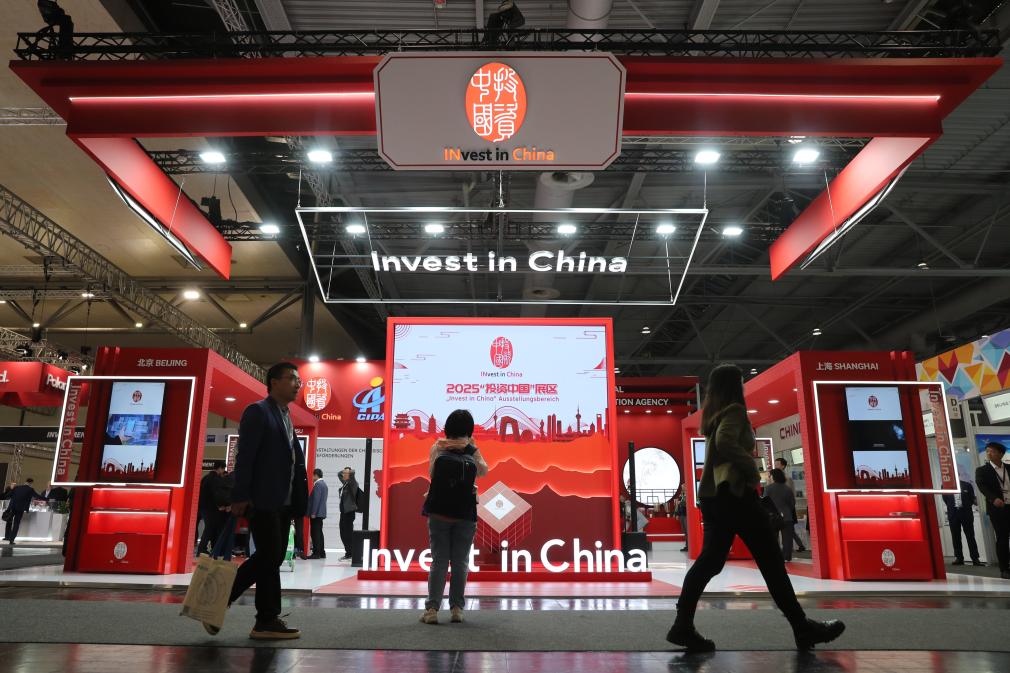 这是3月31日在德国汉诺威工业博览会上拍摄的“投资中国”展区。新华社记者 杜哲宇 摄