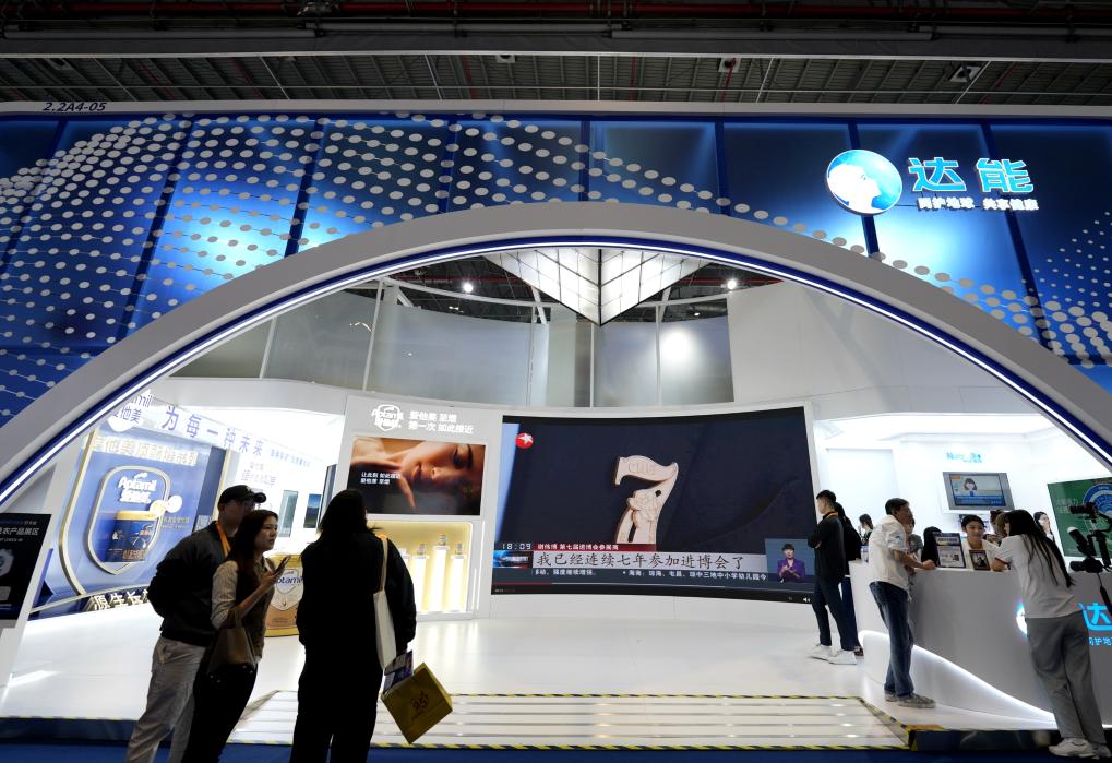 这是2024年11月8日在第七届进博会拍摄的达能展台。达能是进博会七届“全勤生”。新华社记者 张建松 摄