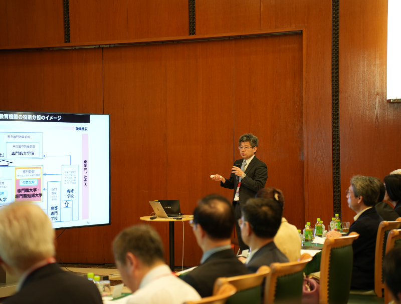 会上,日本文部科学省综合教育政策局新井聪介绍了日本近年来新设立的高等职业教育机构“专门职大学”的目的、特点等,并与中国的职业技术大学进行了比较。新井聪认为,日本设立专门职大学与中国将职业学院升格为本科教育的职业技术大学有其共通点,即随着产业机构和社会环境的变迁,以往只注重学习技术的职业教育已不能满足目前解决社会问题、创业、管理等对于理论知识的需求。在2010年后,兼顾技术和理论的本科层次的职业教育需求迅猛增加。