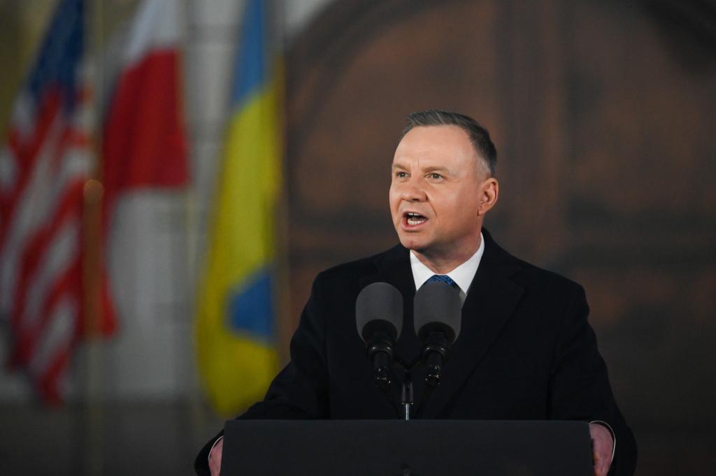 2023年2月21日,波兰总统杜达在华沙发表讲话。新华社发(阿列克西摄)