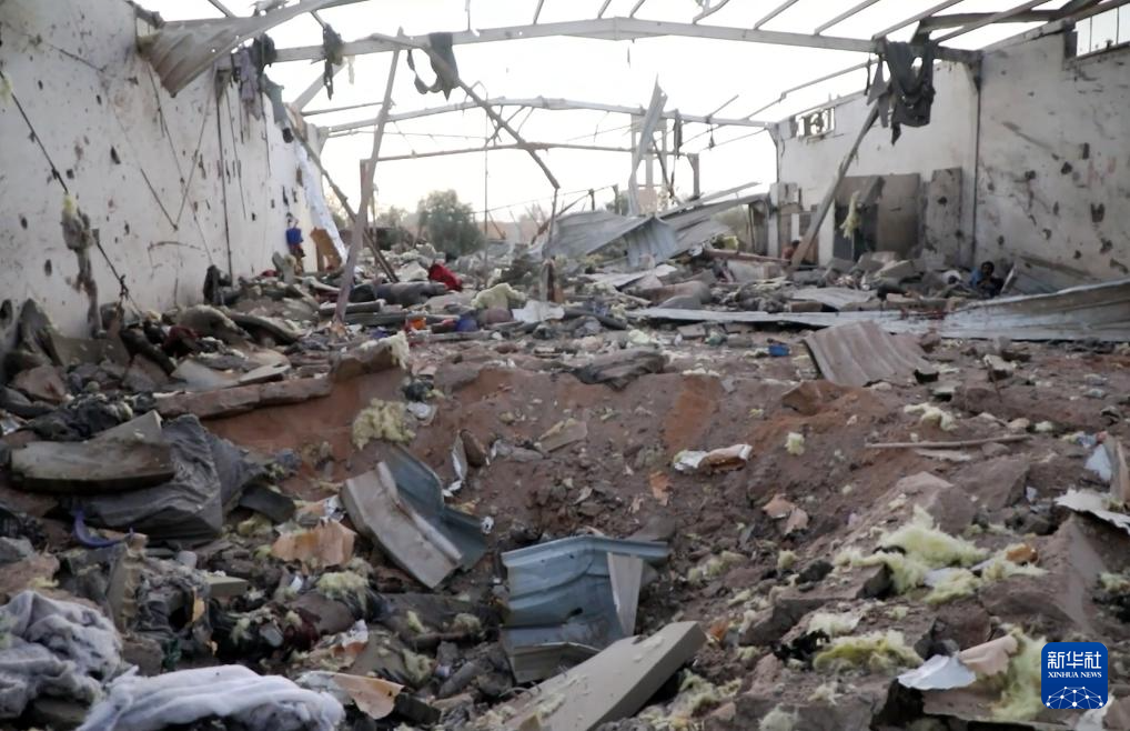 这张4月28日拍摄的视频截图显示的是也门萨达省遭空袭的拘留中心。新华社发(胡塞媒体中心供图)
