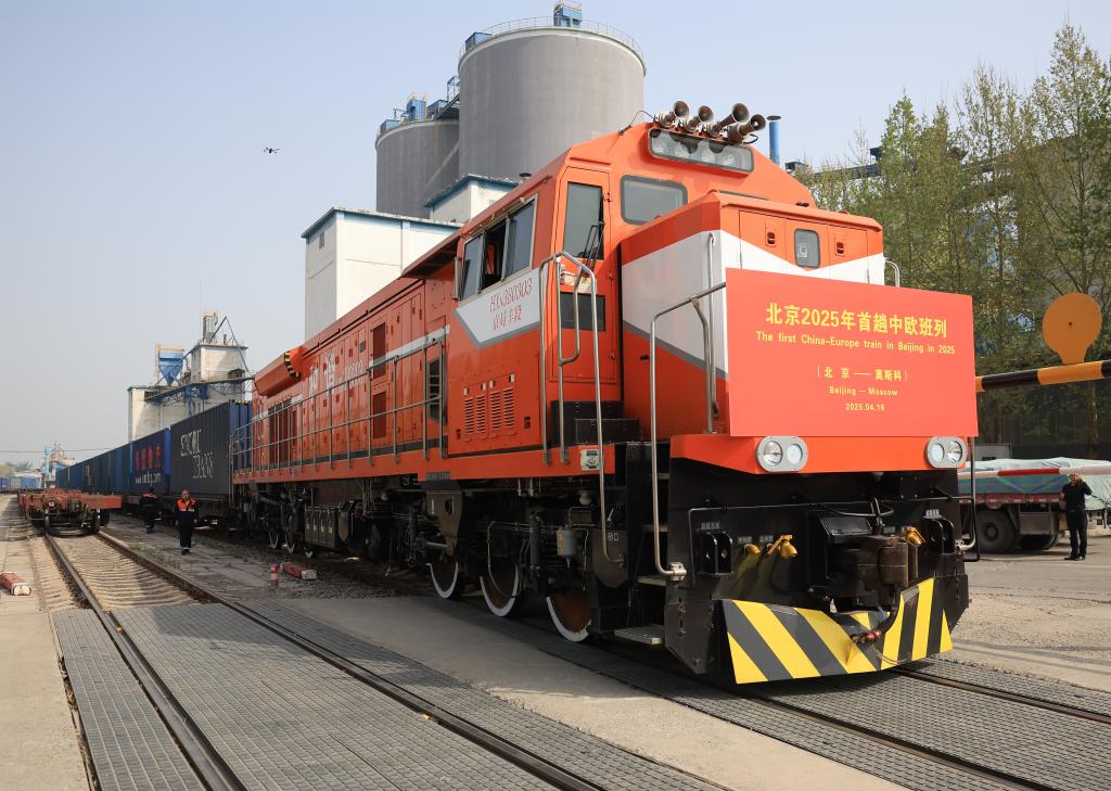 4月16日,在北京铁路物流中心琉璃河营业网点,中欧班列(北京—莫斯科)停靠在网点内。新华社记者张晨霖摄