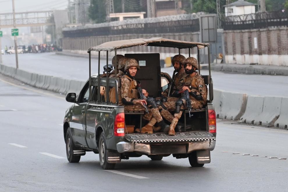 5月10日,在巴基斯坦拉瓦尔品第,安全人员在印度导弹袭击过后把守在通往努尔·汗空军基地的道路上。新华社发 (艾哈迈德·卡迈勒摄)