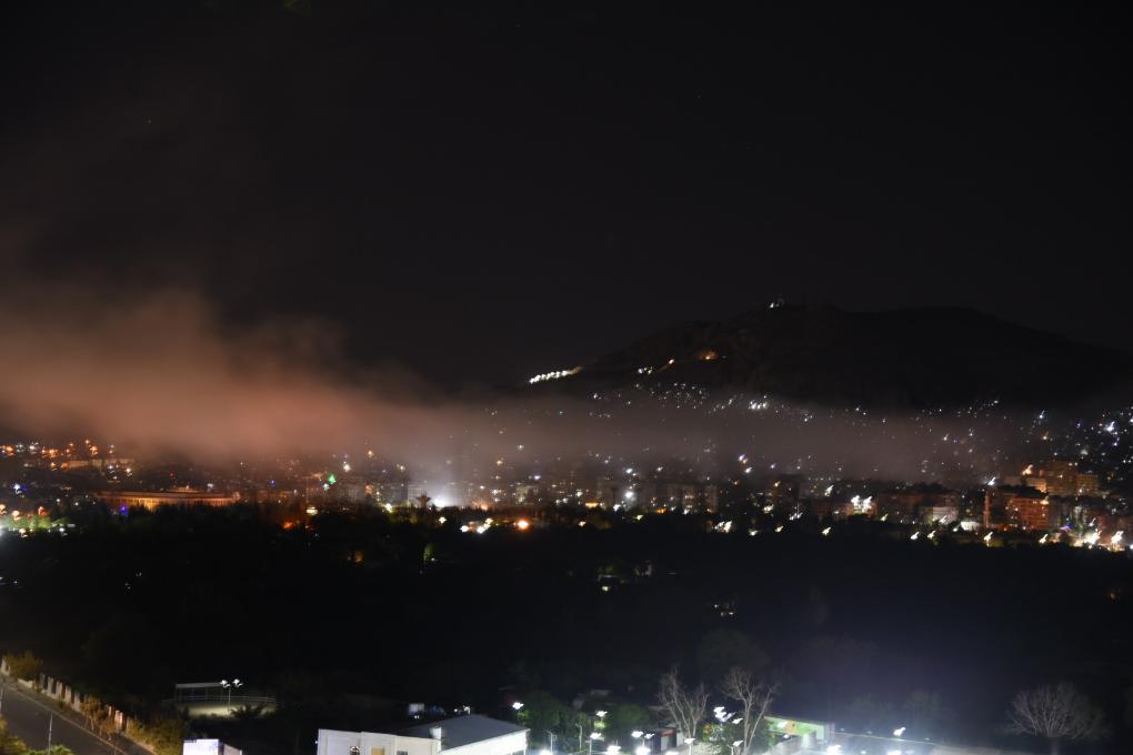 5月3日凌晨,叙利亚首都大马士革附近地区遭到以色列空袭后升起浓烟。新华社发(蒙塞夫·梅马里摄)
