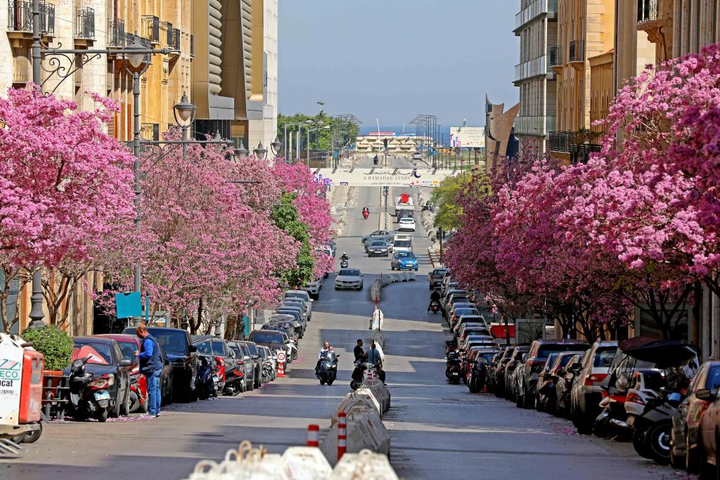 3月18日,黎巴嫩首都贝鲁特的一条街道旁鲜花盛开。新华社发(比拉尔·贾维希摄)