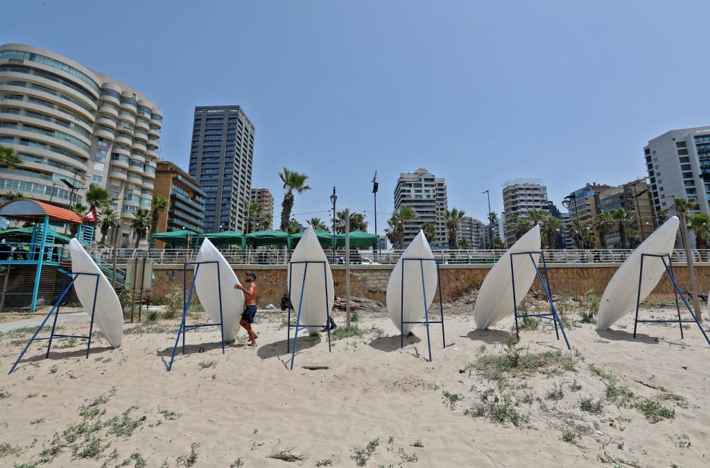 4月30日,游客在黎巴嫩贝鲁特一处公共海滩休闲。新华社发(比拉尔·贾维希摄)