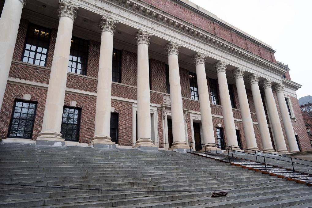 这是2024年4月20日在美国马萨诸塞州剑桥拍摄的哈佛大学图书馆。新华社记者刘杰摄