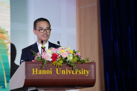 越南河内大学校长阮文朝致辞表示,学好中文为同学们打开了极具吸引力的就业前景之门,助力他们融入日趋强劲的越中经济合作浪潮。青年学子是推动越中文化、教育、经济交流的重要力量,肩负着增进两国人民理解与友谊的使命。他期待青年们以语言为桥、文化为纽,助力越中友谊之树根深叶茂、硕果累累。
