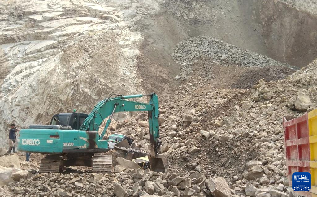 5月30日,在印度尼西亚西爪哇省井里汶,挖掘机在事发采石场开展救援工作(手机照片)。新华社发(井里汶地区灾难管理局供图)