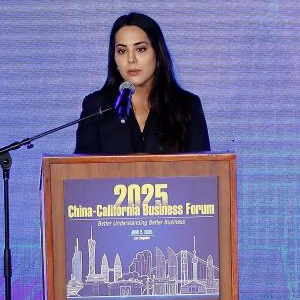 6月2日,美国加州交通署署长托克斯·奥米沙金在洛杉矶举行的2025年中国—加州经贸论坛上发言。新华社发(邱晨摄)