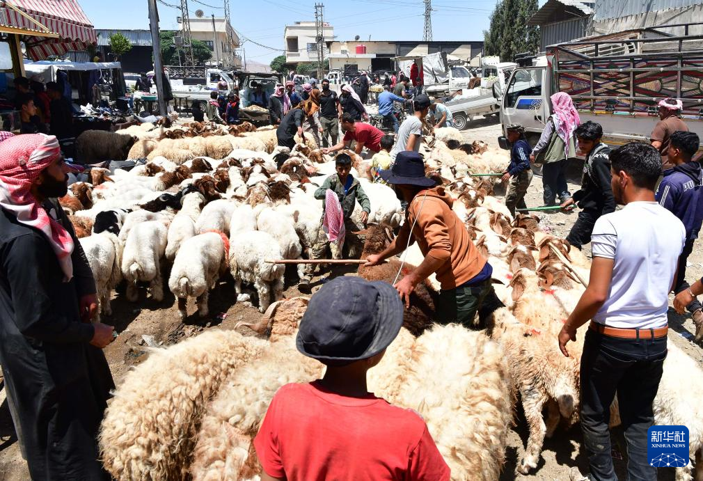 6月5日,人们聚集在叙利亚大马士革的牲畜市场内。新华社发(阿马尔·萨法尔贾拉尼摄)