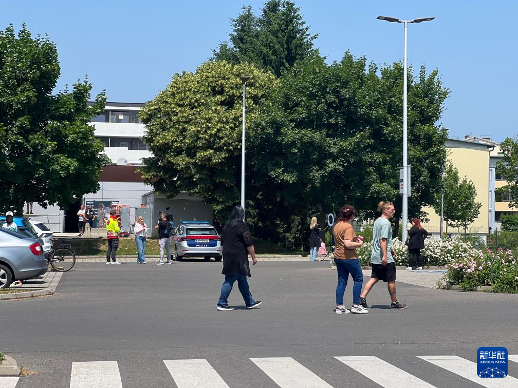 6月10日,在奥地利格拉茨市,行人从枪击事件现场附近走过。新华社发(朱振涛摄)