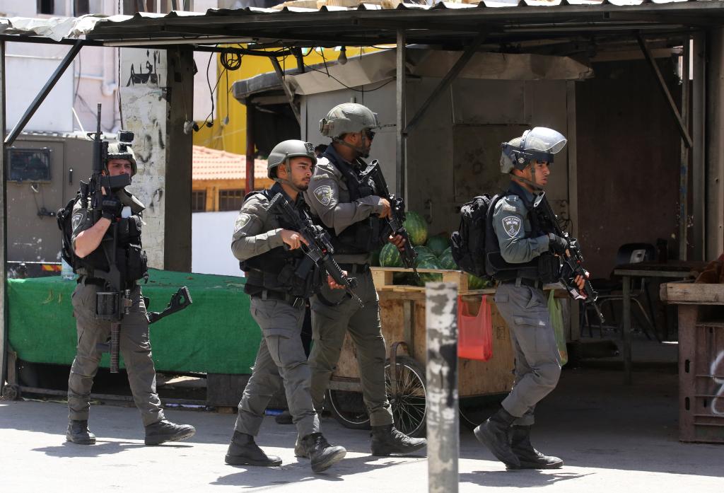 5月20日,以色列警察在约旦河西岸城市纳布卢斯郊区的阿斯卡尔难民营附近开展行动。新华社发(尼达尔·艾仕塔耶摄)