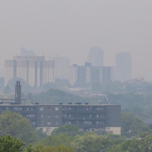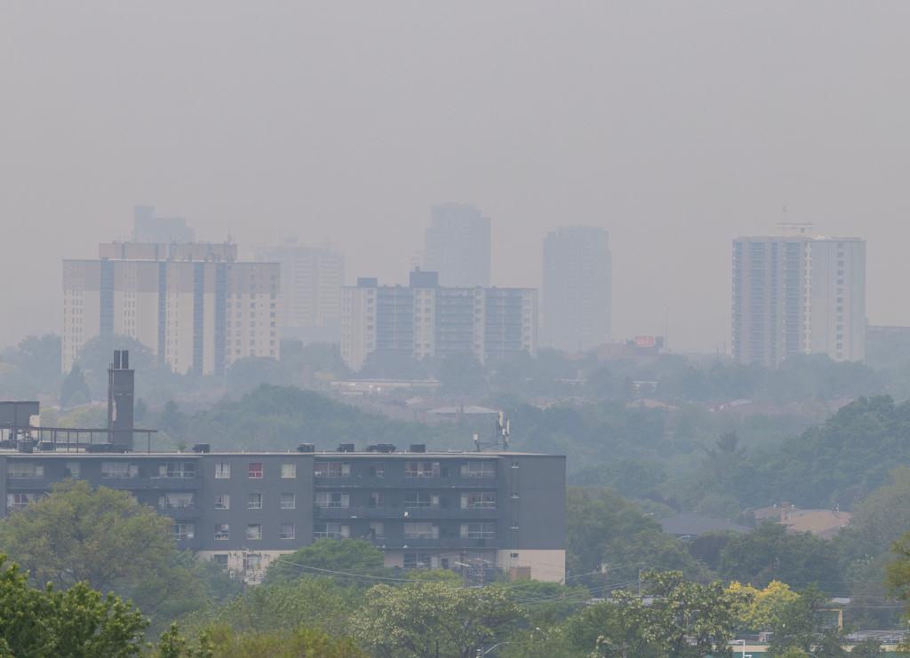 6月6日,加拿大多伦多市区笼罩在烟尘中。新华社发(邹峥摄)