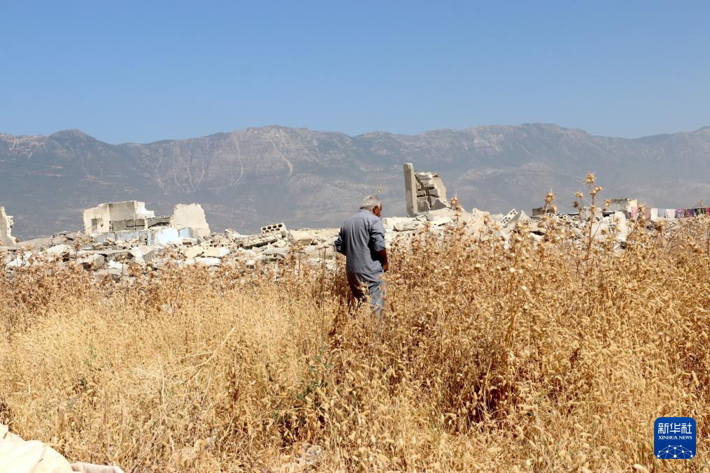6月20日,在叙利亚哈马省,阿克拉姆·马哈茂德·谢哈达在已成废墟的家园旁劳作。