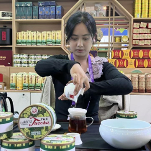 走进南博会现代农业馆,依然能看到销法沱的身影。茶艺师将适量茶叶投入壶内,以沸水冲泡,茶香立即四溢。