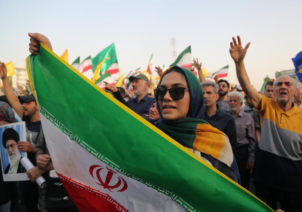 6月24日,民众在伊朗首都德黑兰革命广场庆祝伊以停火。新华社发