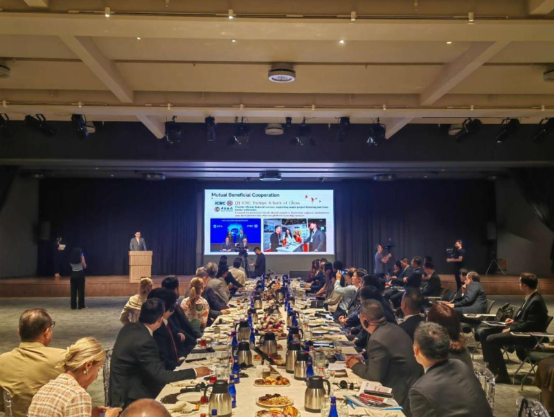 中国银行、中国工商银行、华为、国家电投等中资企业代表及绿松石媒体集团旗下英文、新闻、财经频道等负责人围绕各自主营业务,作推介演示。在问答环节,魏晓东携中资企业代表,围绕土耳其媒体人关心的热门话题,解疑释惑,分享信息。