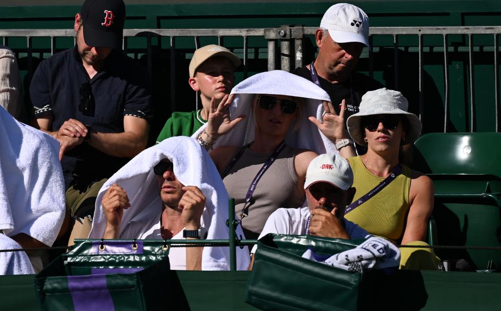 6月30日,在英国伦敦,观众在烈日下观看温布尔登网球公开赛。新华社记者 李颖 摄