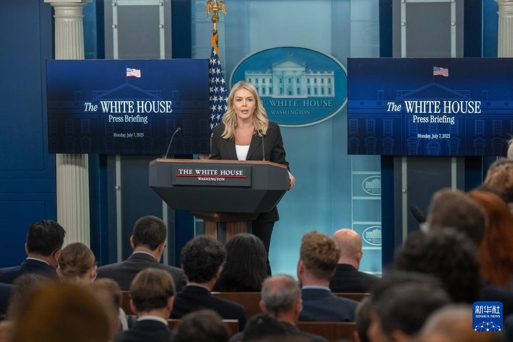 7月7日,在美国首都华盛顿白宫,白宫新闻发言人卡罗琳·莱维特出席记者会。新华社记者 胡友松 摄