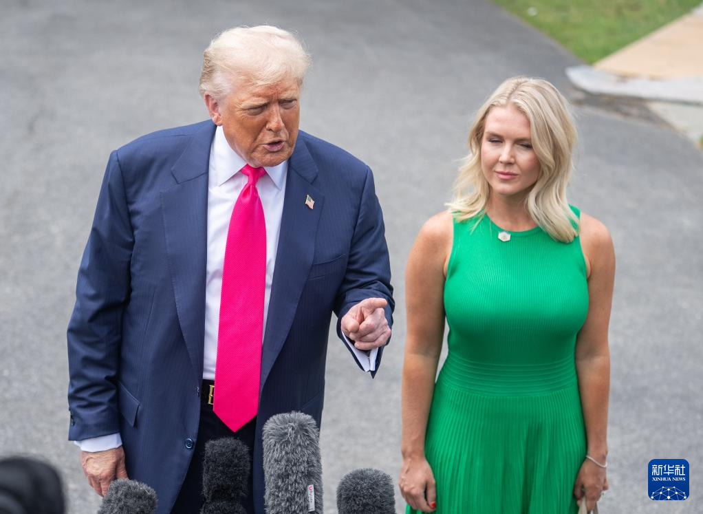 7月15日,美国总统特朗普(左)在华盛顿白宫回答记者提问。新华社记者 胡友松 摄
