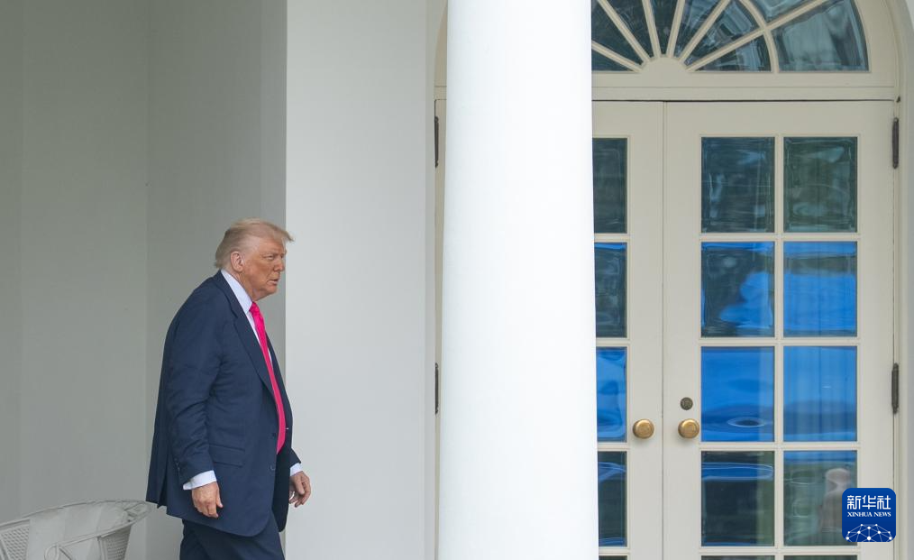 7月15日,在美国华盛顿白宫,美国总统特朗普走向玫瑰园。新华社记者 胡友松 摄
