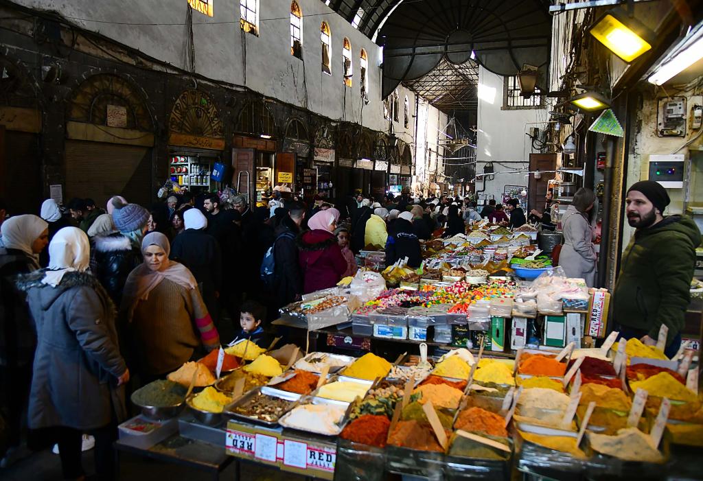 2月27日,人们在叙利亚大马士革的一处市场采购。新华社发(阿马尔·萨法尔贾拉尼摄)