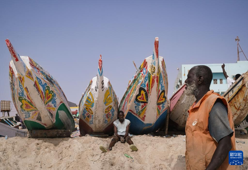 7月14日,一名渔民在毛里塔尼亚首都努瓦克肖特的渔港休息。